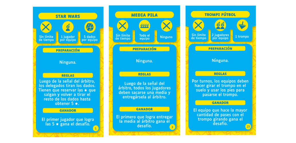 En cada desafío van a encontrar todo lo necesario: cantidad de tiempo que tienen los equipos para cumplir el desafío, la cantidad de jugadores que participarán, los elementos que se utilizarán y la descripción del desafío.